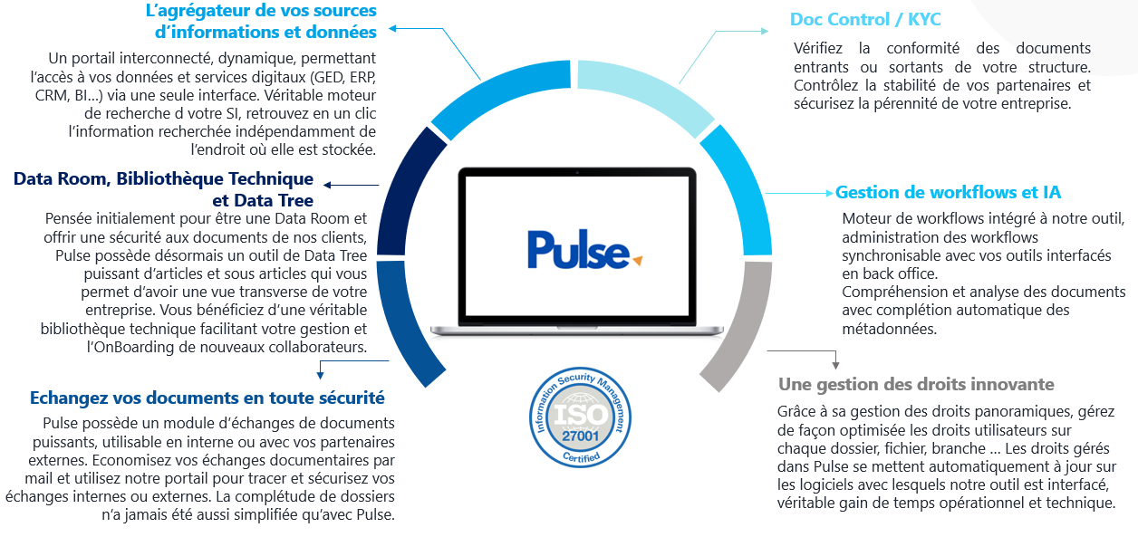 Pulse, c’est bien plus qu’un outil de gestion documentaire. C’est une plateforme d’unification de vos contenus, données et processus, pensée pour apporter une vraie valeur opérationnelle.